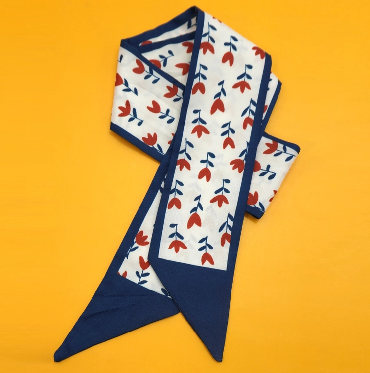 Stylish colorful pattern light weight Twilly headwrap scarf, and can be used as scarf necklace. Crafted from breathable, airy fabric, it offers a gentle, silky feel against the skin. Whether worn around the neck, styled as an accessory for your bag or hair, or necklace this versatile scarf.