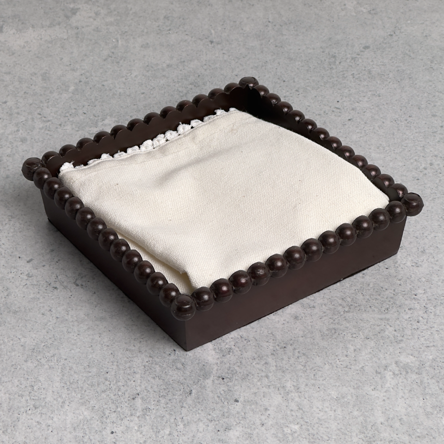 Add a touch of elegance to your home with our stunning Aluminum and Copper Beaded Napkin Holder. Perfect for entertaining guests, this stylish accessory will keep your napkins organized and within easy reach. Its intricate beaded design adds a unique and sophisticated flair to any table setting.