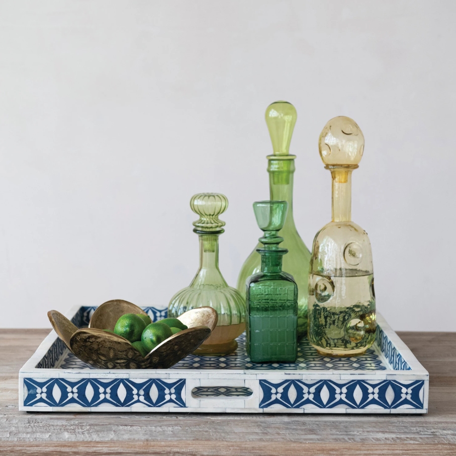 40 oz. Glass Ribbed Decanter, Green - 13 Hub Lane   |  Decanters