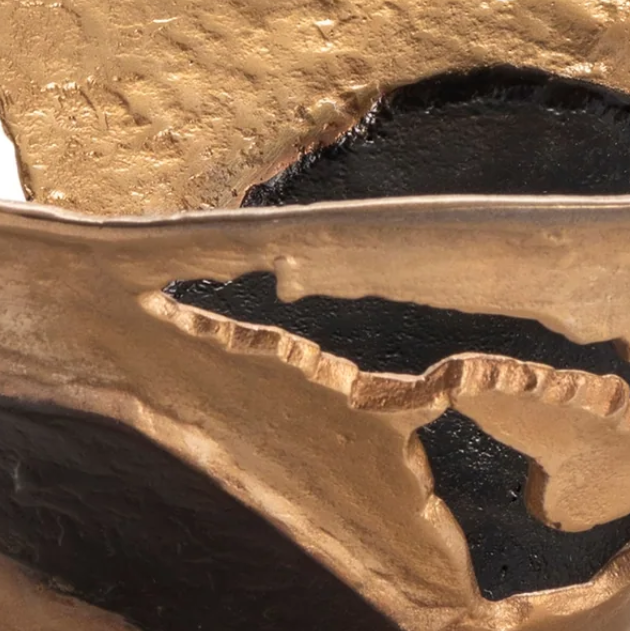 The Crestview Collection Willow Gold Larger Pierced Bowl is made from cast aluminum and has been given a rustic brass finish. There are openings in the bowl that look as though pieces were ripped out of it and a dark vein of color swirls its way around the bowl's inside and ever so slightly spills to the outside. This bowl will attract attention on its own or included in a display.