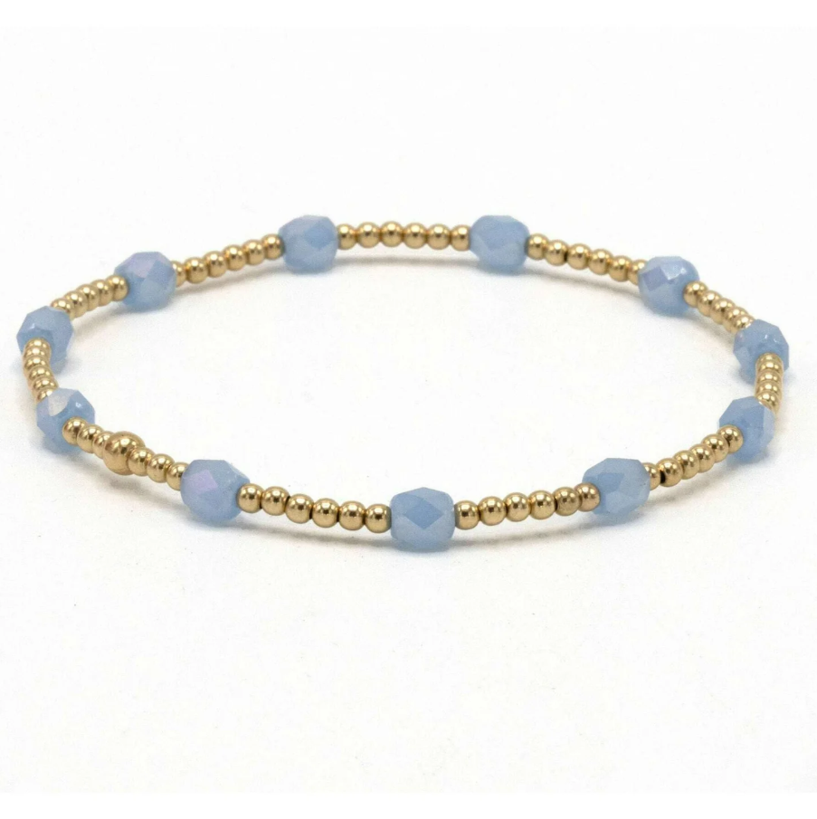 Vibrant yet soothing...like the waters of Key West.  Our new collection features our long loved gold filled beads with colored glass beads.  Made for stacking, why pick just one color?  14k gold-filled with glass cut beads around.  Part of our erin gray waterproof bracelet collection!