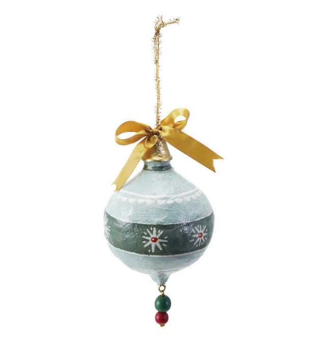 Hand-Painted Paper Mache Ornament w/ Bow - 13 Hub Lane   |  Paper Mache Ornaments
