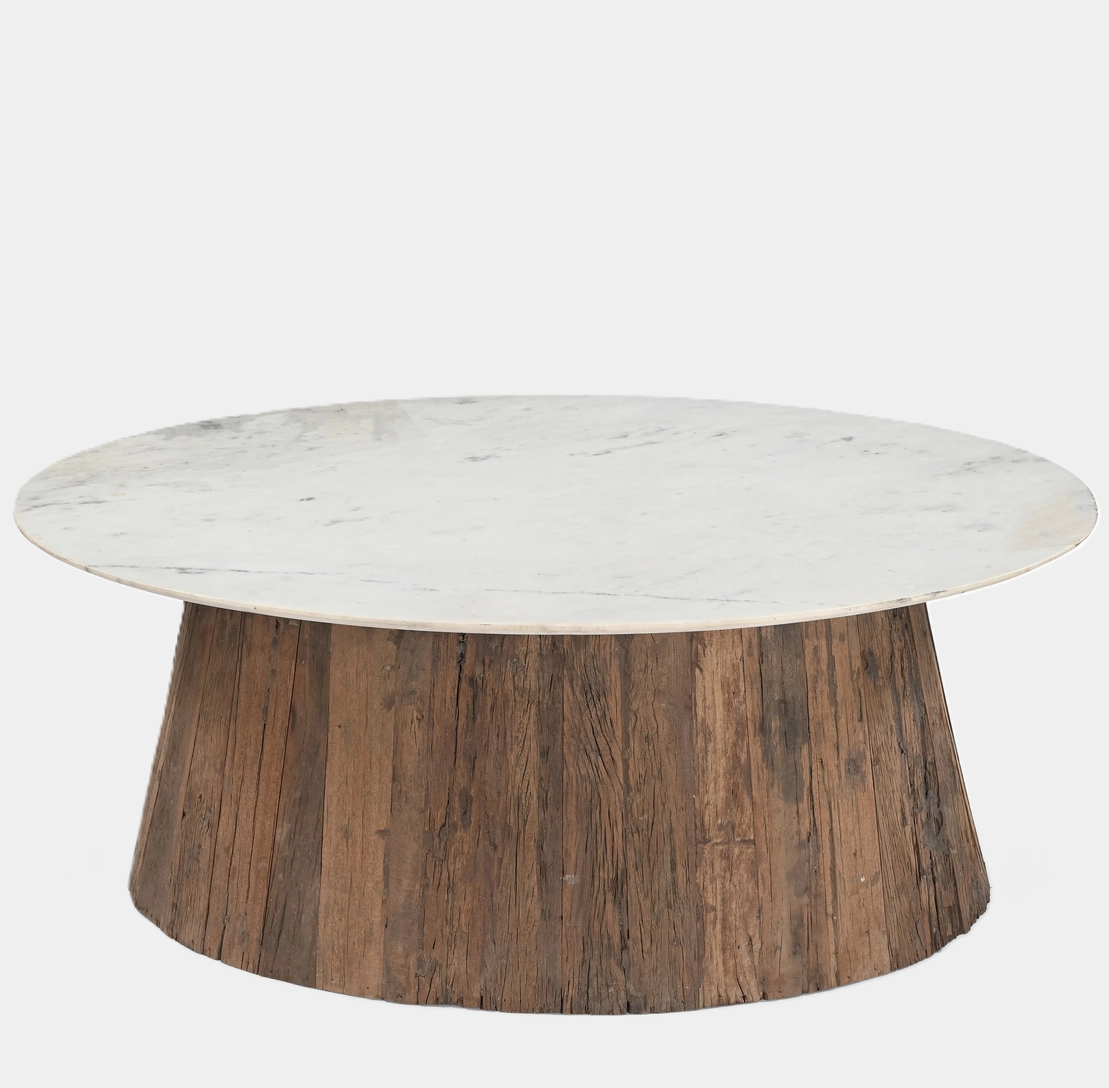 Oval Wood Coffee Table w/ Marble Top - 13 Hub Lane   |  Coffee Tables