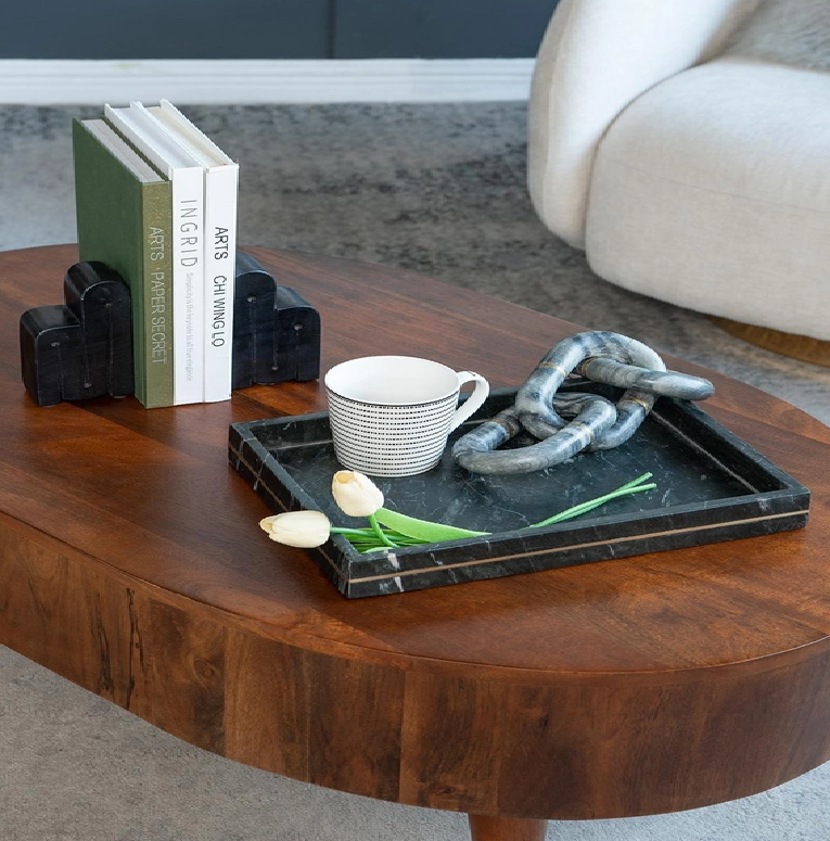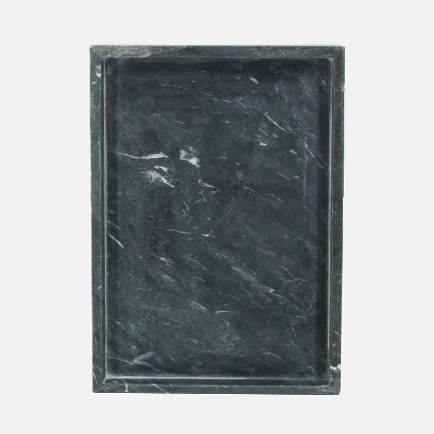 Blending style and function, this decorative tray is crafted from pure black marble and boasts a sleek rectangle silhouette that is accented by a brass inlay. Measuring 15L x 11W x 1.5H, it's a perfect size to organize essentials on your bathroom vanity or display decorative accents on your ottoman, tabletop, or dresser.