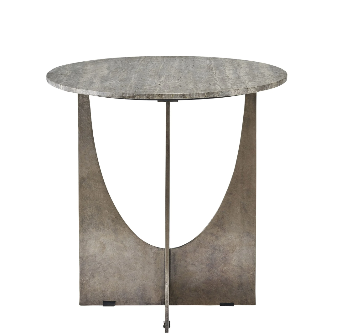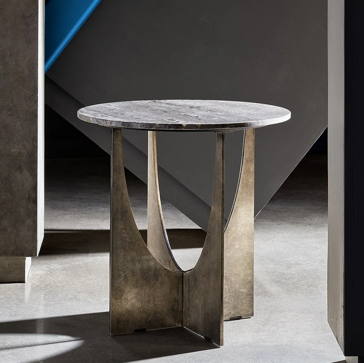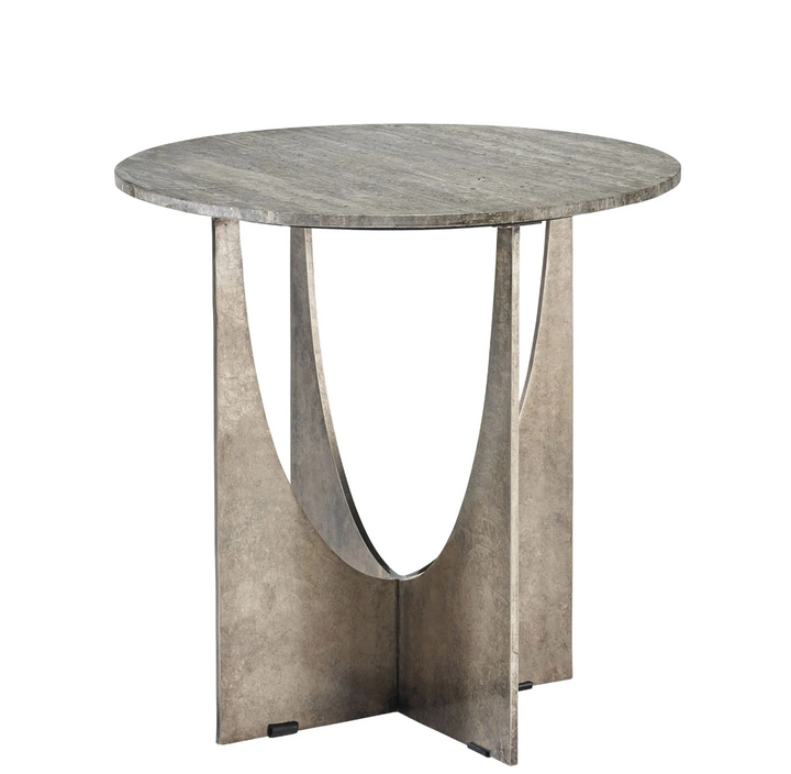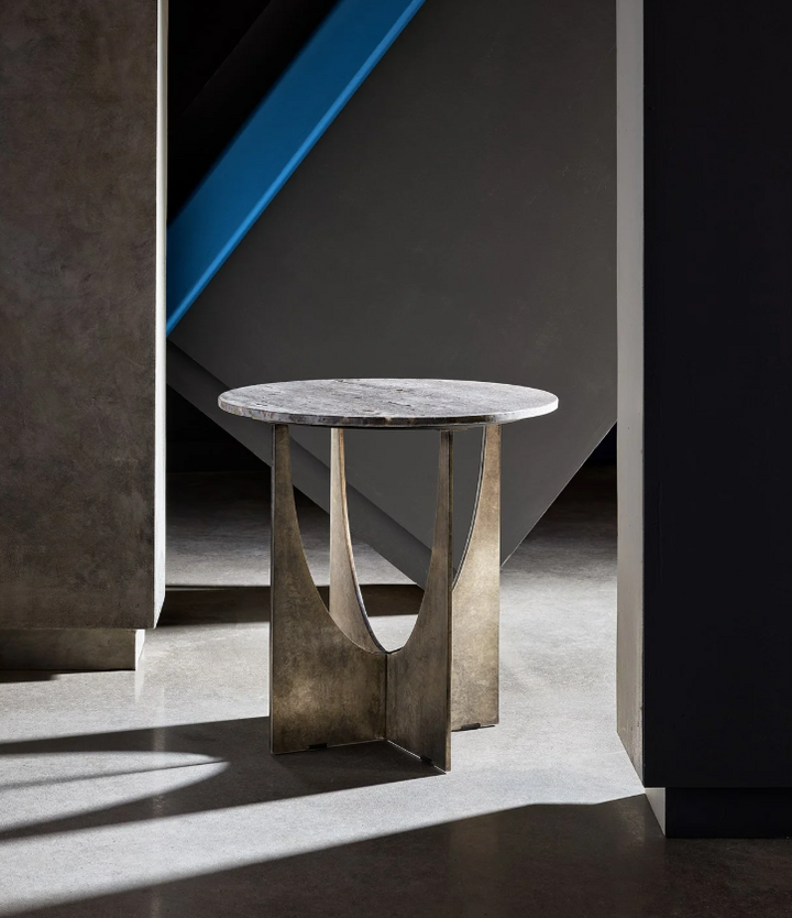 Punctuate sofas and accent chairs with the unique Op Art End Table, a optically-inspired piece showcasing a forward-thinking juxtaposition of curved and linear edges finished in a dynamic, bronzed hue.