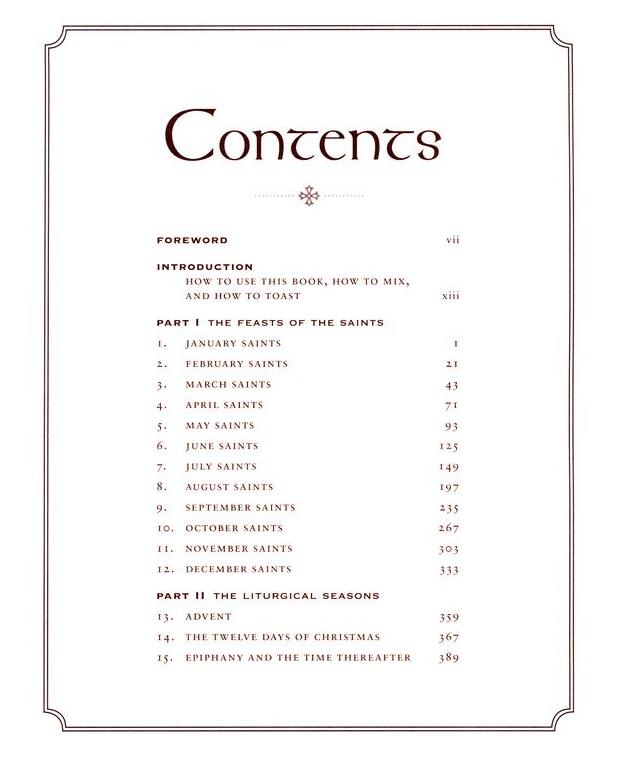 Recipe for a liturgically correct cocktail: mix Bartender’s Guide and Lives of the Saints, shake well, garnish with good cheer. Drinking with the Saintsis a concoction that both sinner and saint will savor.