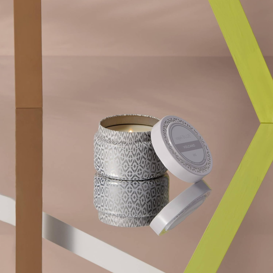 Your go-to travel companion now available in crisp white! This Volcano Printed Travel Tin Candle is perfect for the wanderlust at heart. The candle has a dazzling white and silver design, ensuring that it provides a luxe feel anywhere you place it.