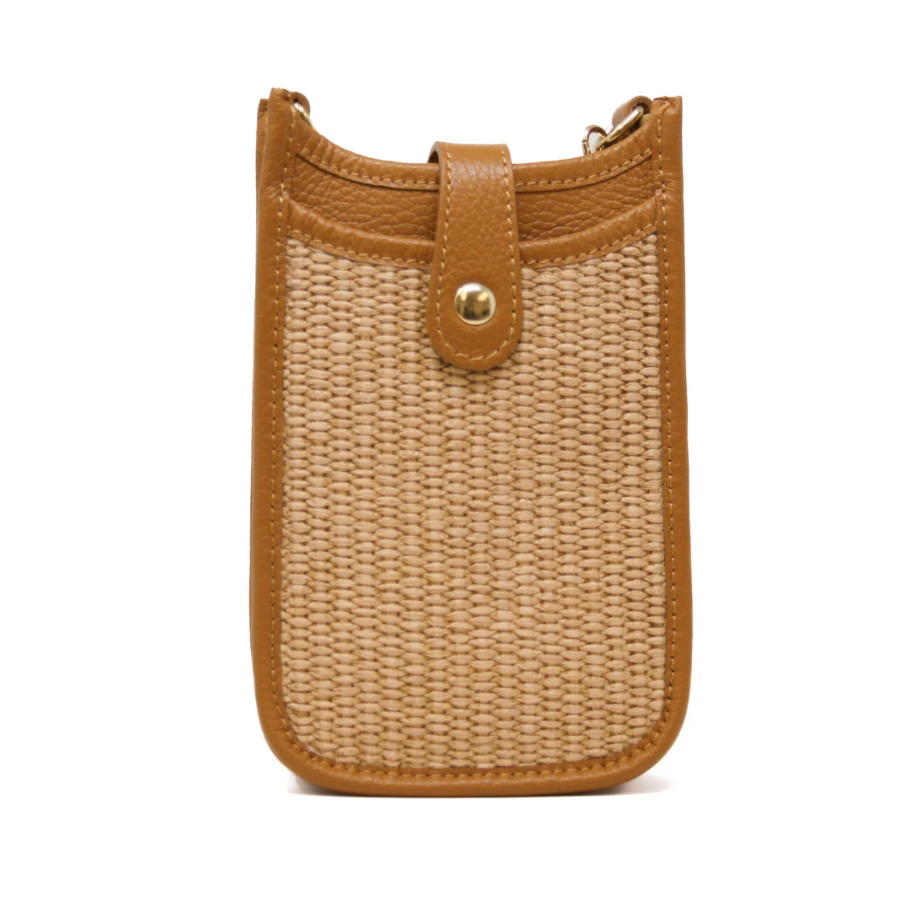 Leather & Straw Cellphone Crossbody Bag - 13 Hub Lane   |  Cellphone Crossbodies