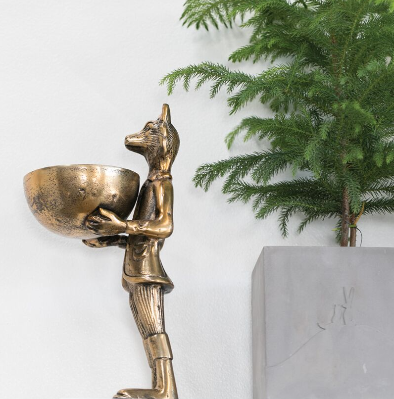 This metal stand featuring Eloise the fox is as practical as it is beautiful. With a beautiful brass-gold finish and a bowl for display or gifts, this piece is an instant classic with personality to spare.