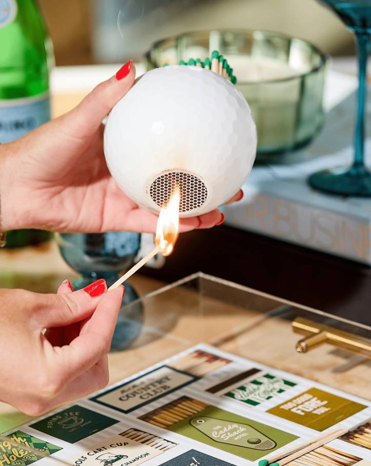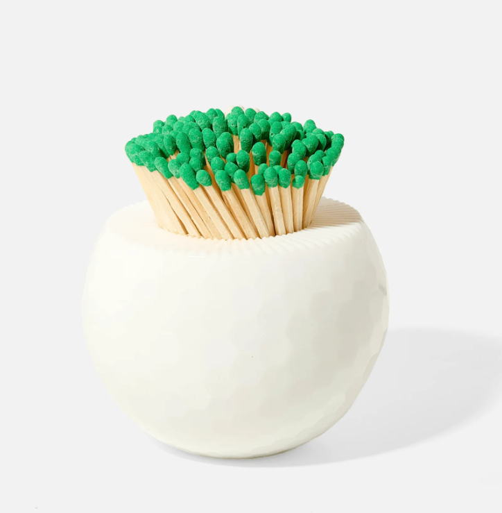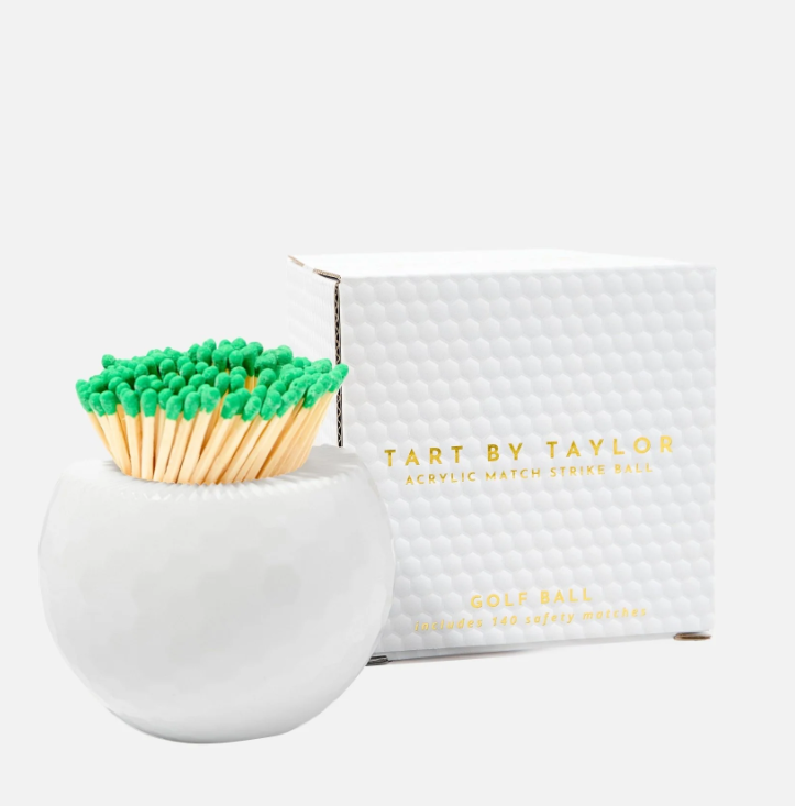 Get fired up with our Golf Ball Match Striker! This match strike is the perfect accessory for your coffee table, desk, or any space that could use a little flair. It features a strike pad on the bottom and comes with 140 matches. Keep this baby ready for any occasion, let's par- tee!