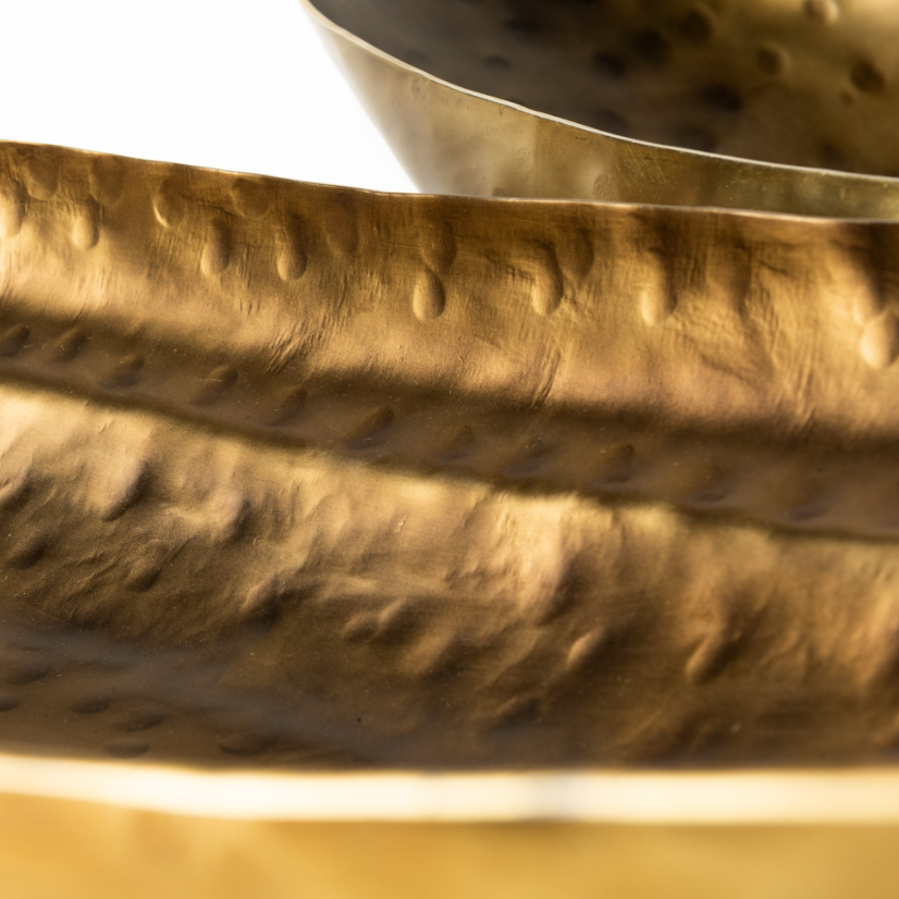 The Karmen bowls are hammered metal bowls with a bright golden finish. Available in two sizes.