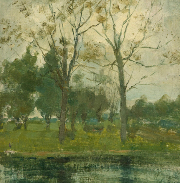 Reproduction of Piet Mondrian - Two Trees Silhouetted Behind A Water Course, 1900-1902
