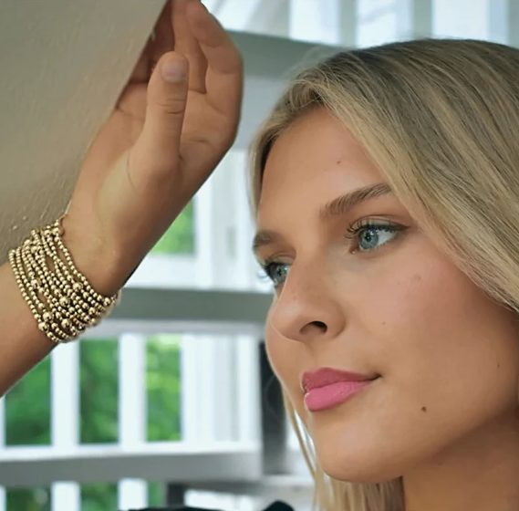 14k gold-filled and waterproof beaded bracelet arranged in delicate, simple,  patterns.  Wear single or stack it.  Part of our erin gray waterproof collection.