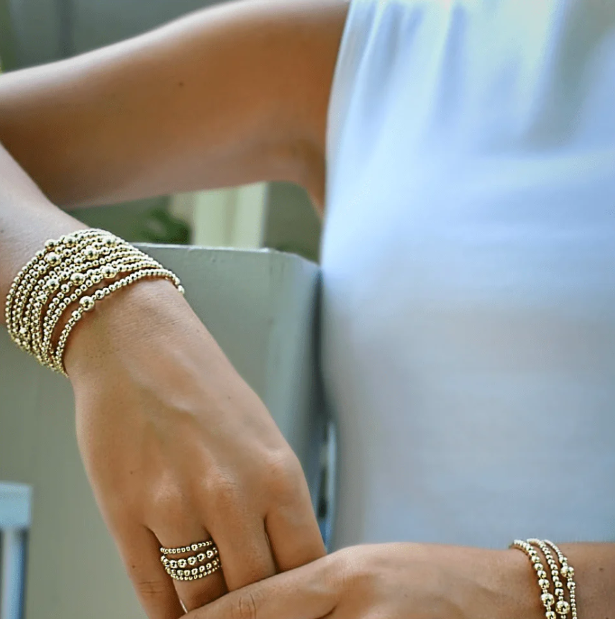 The Nantucket 14k gold-filled bracelet collection offers waterproof durability and resists tarnishing. Available in 6.5" stretch, it’s perfect for wearing solo or layered to create a versatile, stylish look.