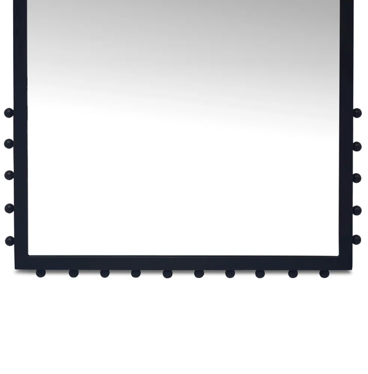 The Figaro floor mirror's sleek iron frame provides a contemporary canvas for reflection. A subtle finial detail graces the bottom of the frame, paying homage to Neoclassical designs. This unexpected twist marries minimalism with whispers of vintage charm, adding visual interest to clean lines.
