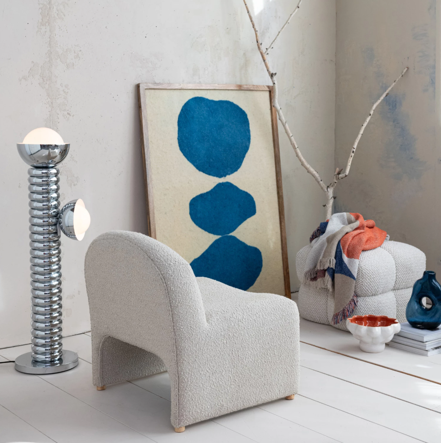 Bouclé Fabric Upholstered Tufted Ottoman