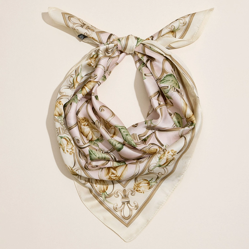 Vintage Rose Chain Border Printed Square Silky Satin Scarf