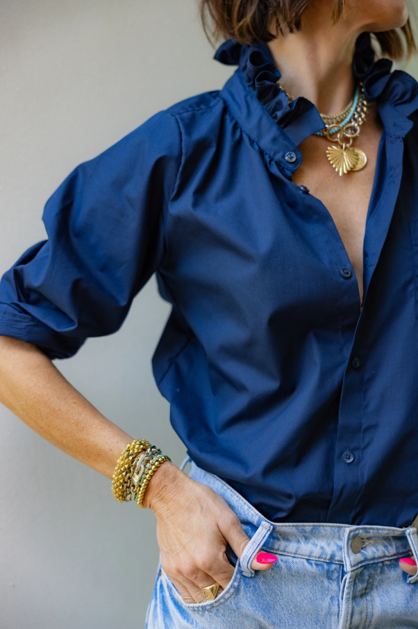Emerson Ruffle Top, Navy