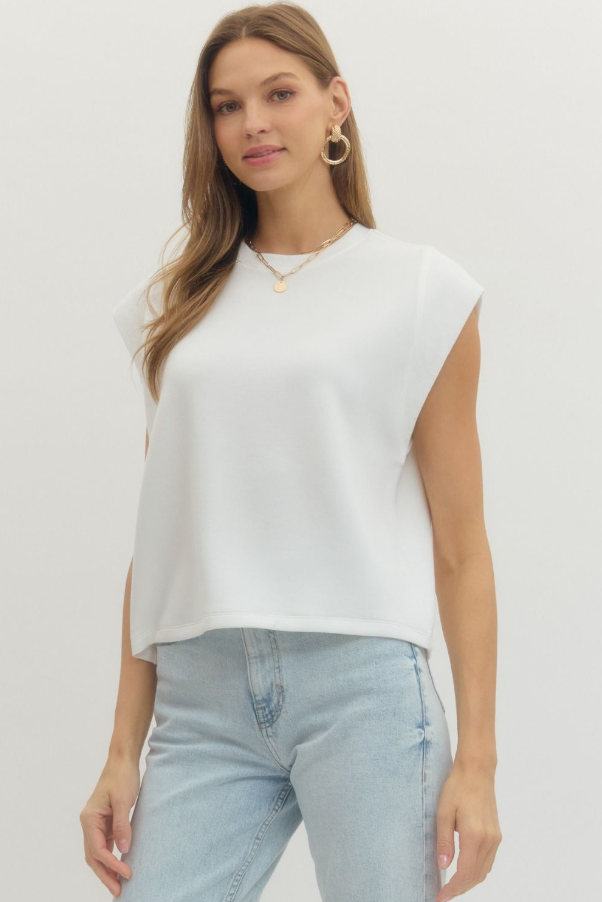 Cap Sleeve Crew Top, Off-White