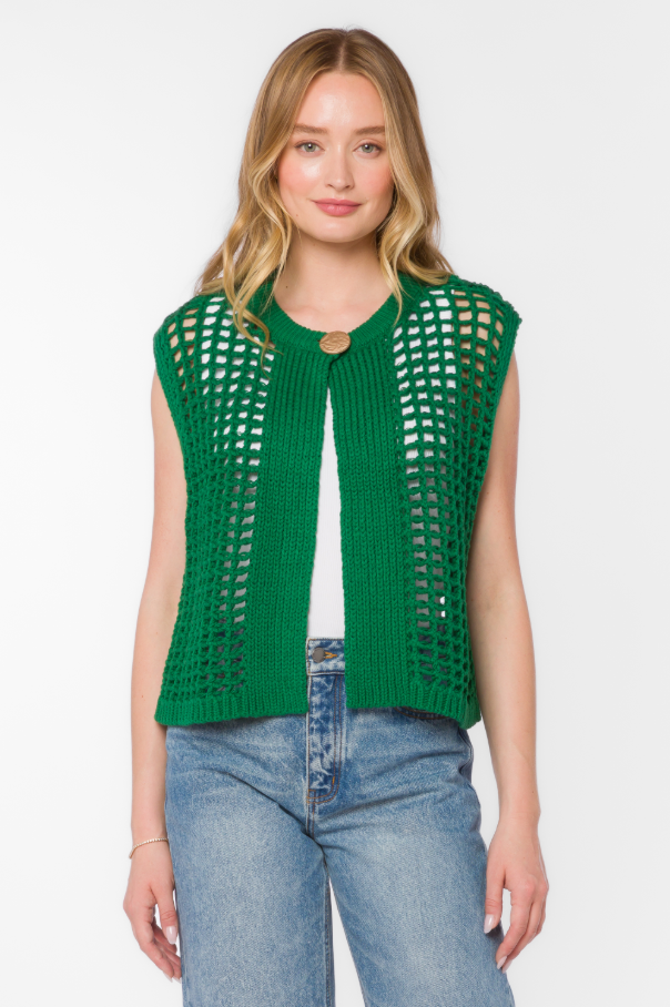Wren Open-Knit Vest, Green Foliage