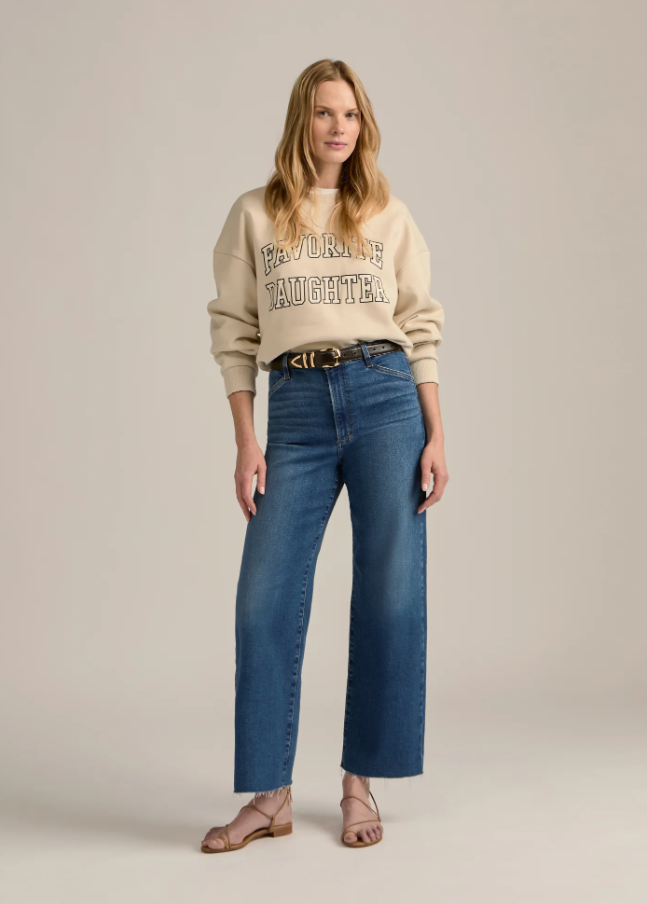 Favorite Daughter Cropped Collegiate Sweatshirt, French Oak w/ Snow White