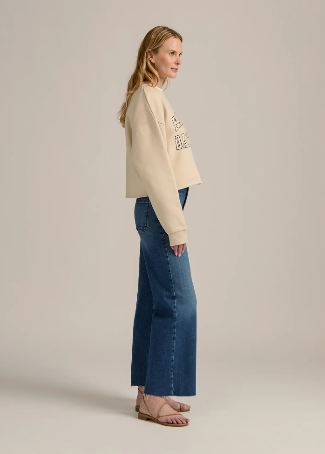 Favorite Daughter Cropped Collegiate Sweatshirt, French Oak w/ Snow White - 13 Hub Lane   |  Cropped Sweatshirts
