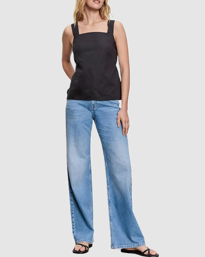 A modern update to your warm-weather wardrobe, this effortlessly stylish Desert Tank by Sanctuary™ features a square neckline and wide shoulder straps that offer a clean, structured look. The back is detailed with a partial button-up closure and an adjustable drawstring tie at the waist, subtly cinching the relaxed silhouette for a flattering shape.