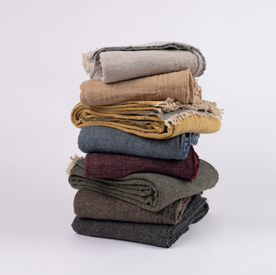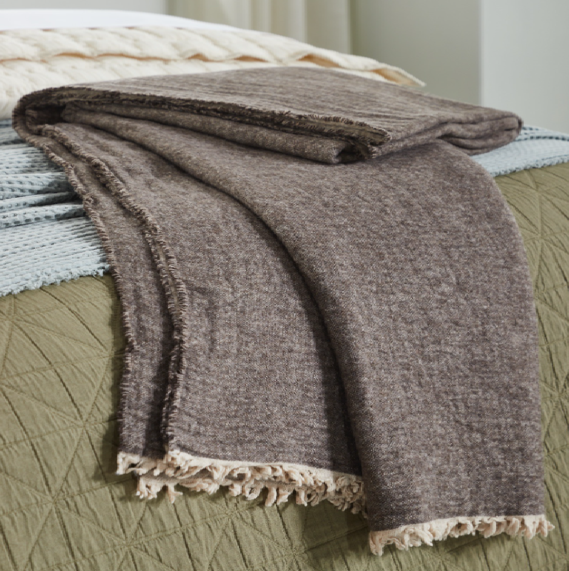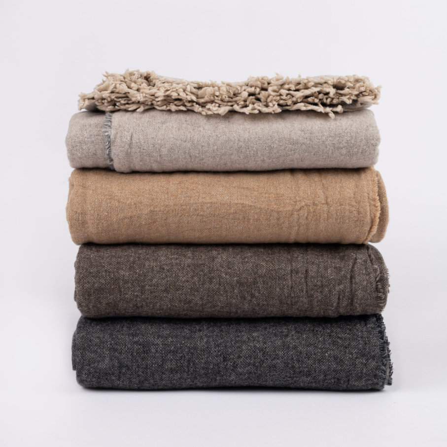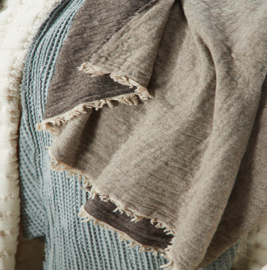 Reversable, this super throw is woven and felted for supreme softness. Both ends are left raw for a vintage look.