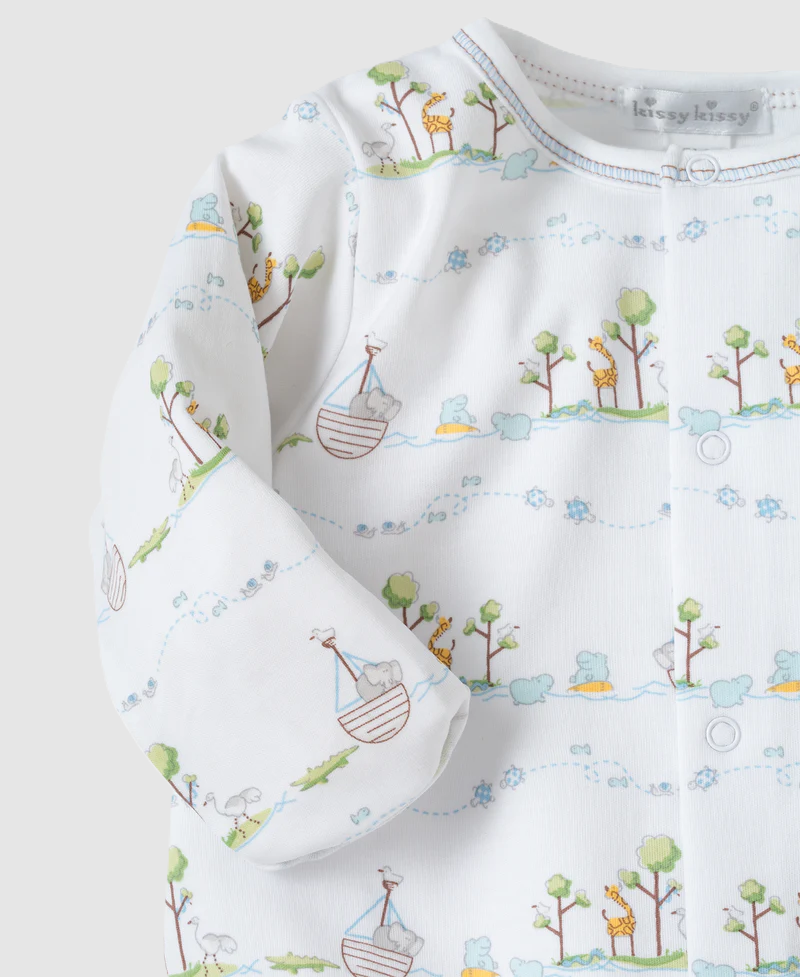 Noah's adorable animal friends pattern this cozy gown for your baby boy. Snaps on legs allow for easy conversion to playsuit. Made from the softest Pima cotton for ultimate comfort.